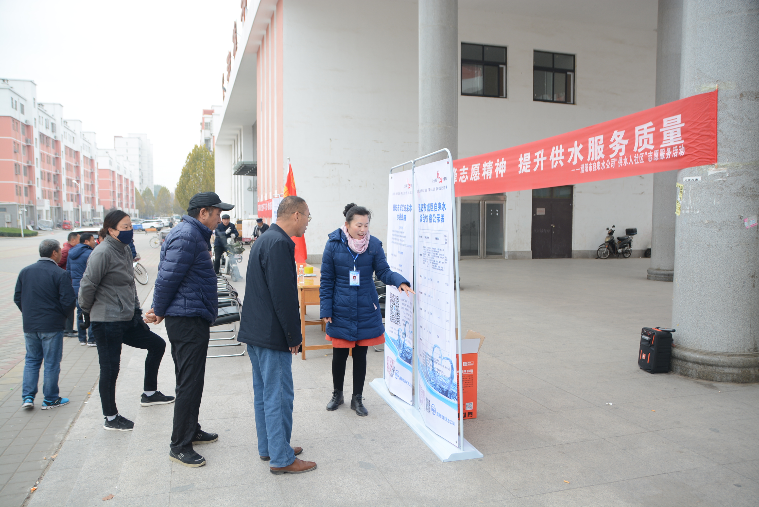 為扎實(shí)開展“不忘初心 牢記使命”主題教育,濮陽市自來水公司按照“守初心、擔(dān)使命、盡職責(zé)、服好務(wù)”的部署要求,11月26日上午,皇甫營(yíng)業(yè)所組織8名志愿服務(wù)人員到林海花園二期,開展“供水服務(wù)入社區(qū)”志愿服務(wù)活動(dòng),主動(dòng)征求居民用戶意見建議,認(rèn)真查找自身工作中存在的短板和不足,下大力氣提升服務(wù)質(zhì)量。現(xiàn)場(chǎng)向小區(qū)居民講解“濮陽市自來水公司”微信公眾號(hào)操作使用,為居民用戶講解安全供水知識(shí),宣傳供水政策法規(guī),解答用戶咨詢和疑難問題。4個(gè)工作組共接待用戶咨詢100余人次,發(fā)放供水服務(wù)指南100余份,指導(dǎo)用戶使用微信公眾號(hào)60余人次,解決用戶家中問題9個(gè),深受居民用戶一致好評(píng),以實(shí)際行動(dòng)踐行興水為民的莊重承諾。