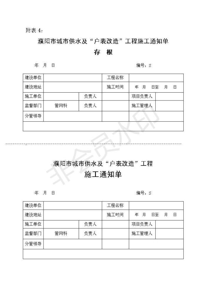 濮陽(yáng)市城市供水及“戶表改造”工程施工通知單