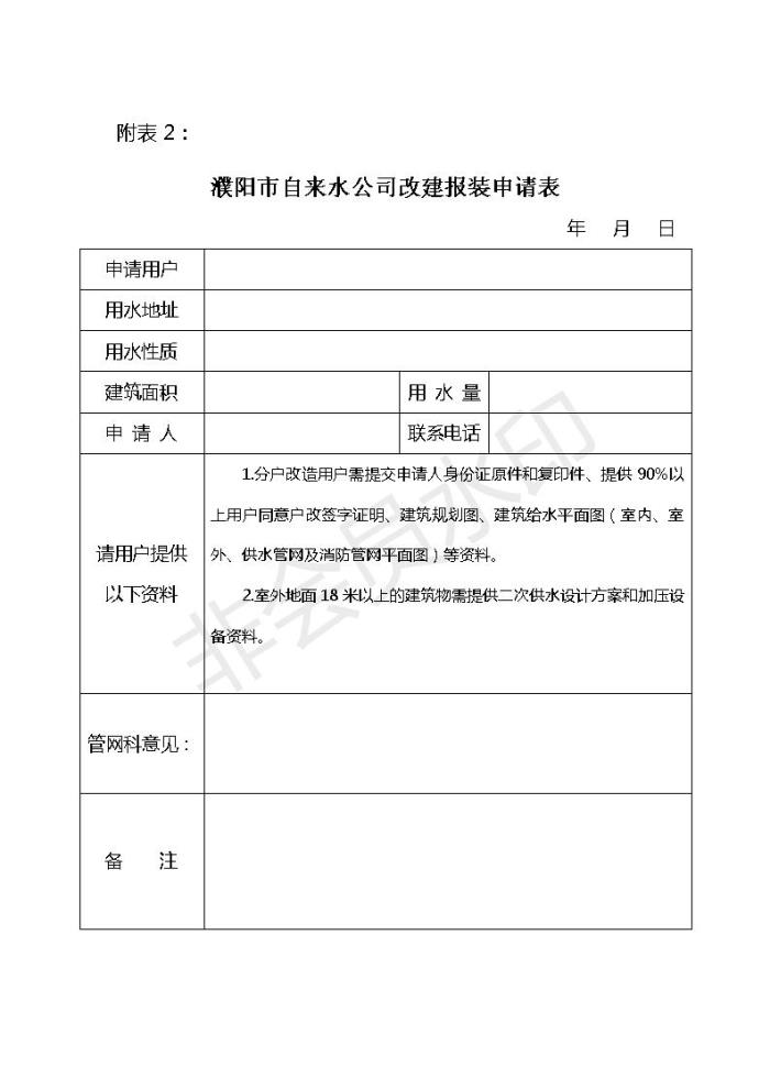 附件2-濮陽市自來水公司改建報裝申請.docx